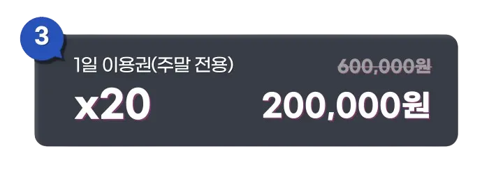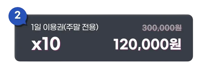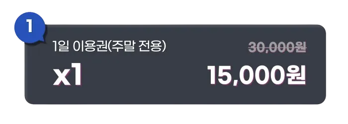 분당점에 보여주신 성원에 보답하는 마음으로 주말 전용 1일 이용권을 보다 가벼운 가격으로 준비했어요