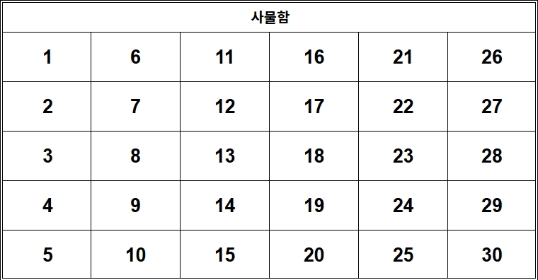 신청 가능한 사물함 : 2, 6, 10, 11, 14, 15, 19, 20, 22, 30