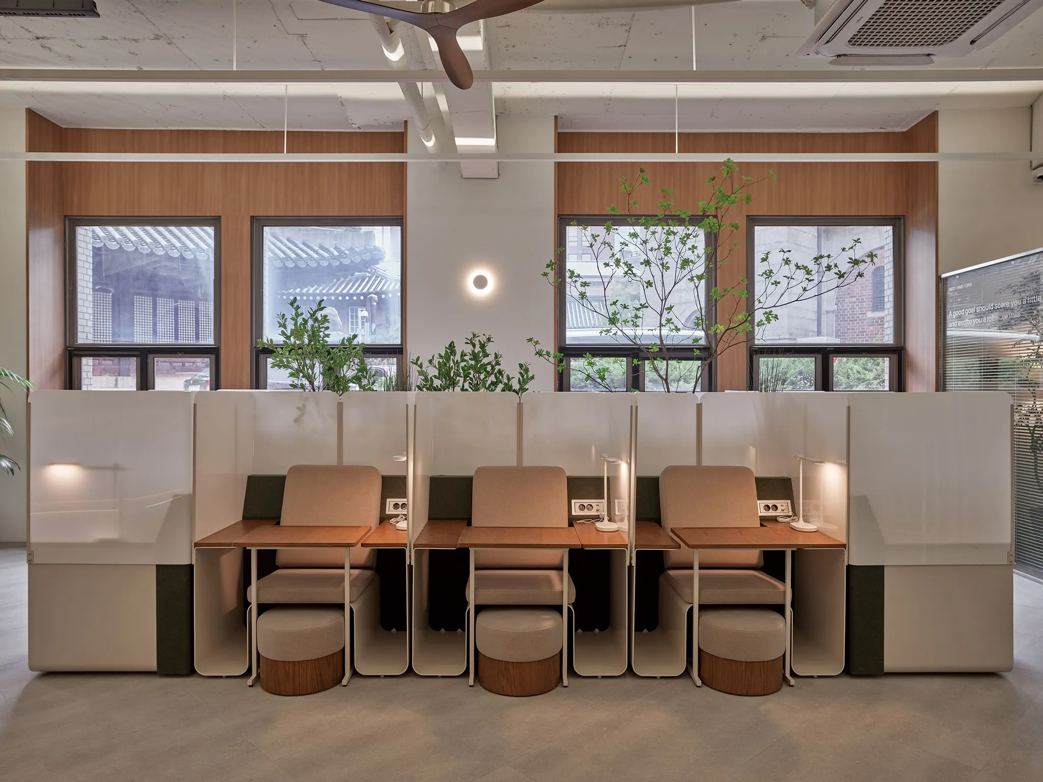 1인 좌석은 총 3가지 유형이 있는데, 모두 포근한 느낌이 있어요.