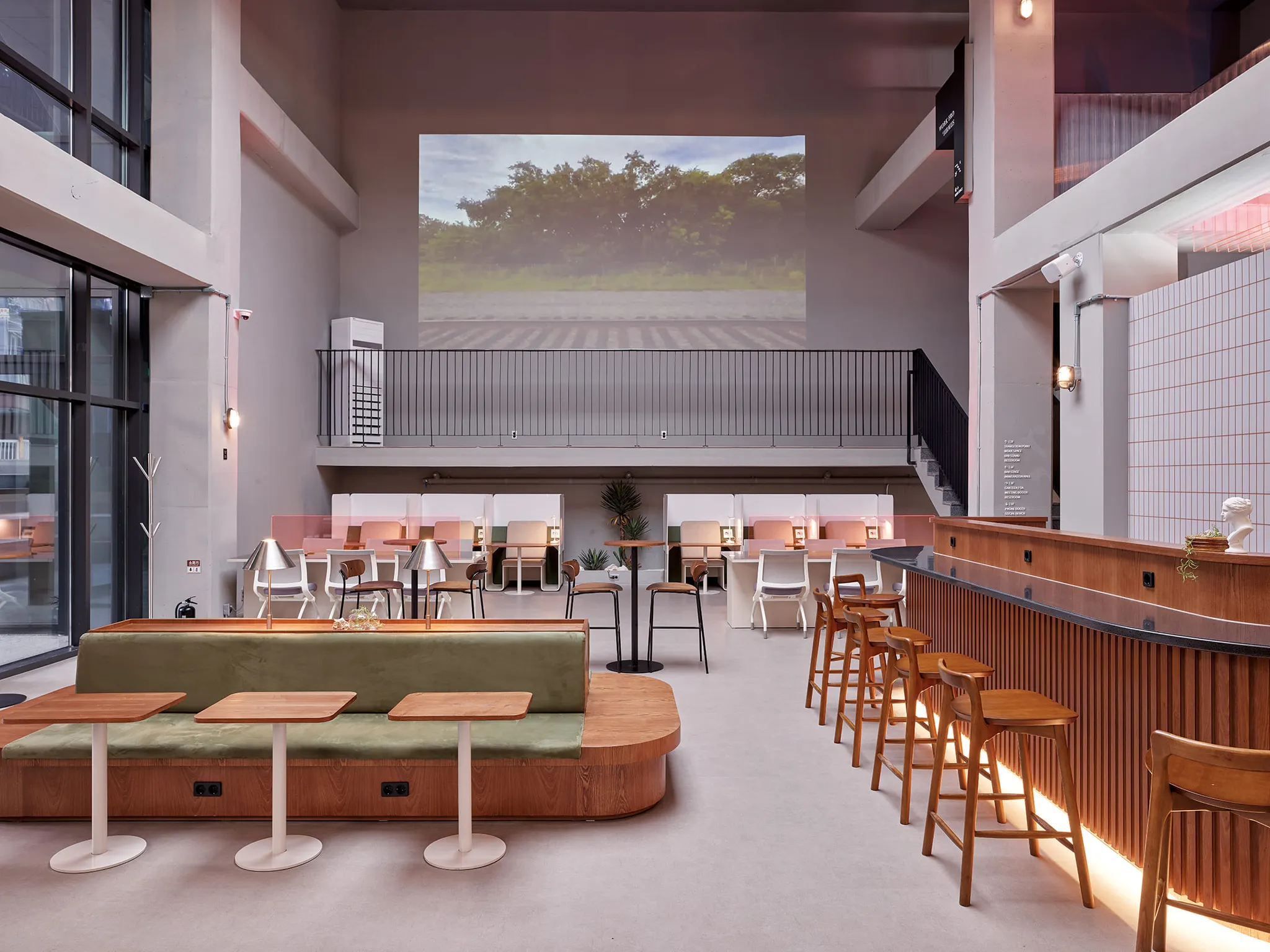 보통 칸막이가 있는자리 / 없는자리 / 공용카페공간 / 폰부스로